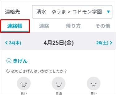 - [連絡帳] のタブをタップし、送信したい日付を選択します。