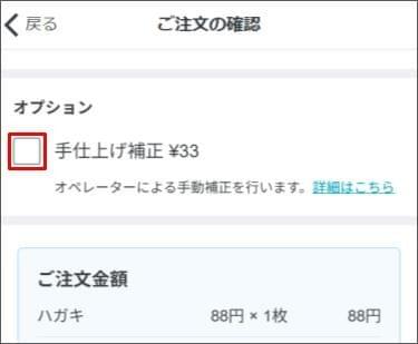 - 手仕上げ補正のオプションを付ける場合は、オプションを有効にします。<任意>