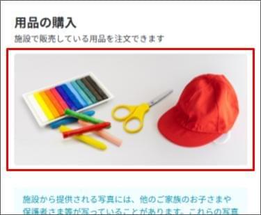 園(施設)が用品の販売をしている場合、保護者アプリで用品の購入ができます。
