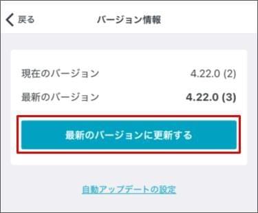 [最新のバージョンに更新する] の表示の場合は、タップすると最新版へアップデートが完了します。