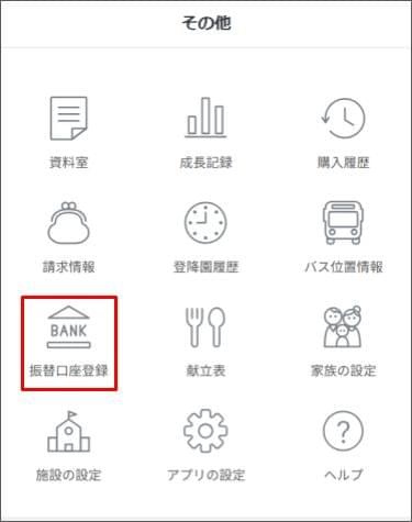 園(施設)が口座振替機能を利用している場合、保護者アプリで口座登録ができます。