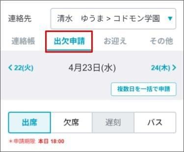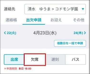 日ごとに欠席申請をする