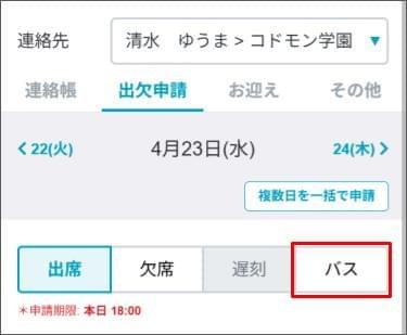 日ごとにバス送迎変更の申請をする