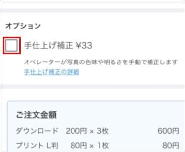 - 手仕上げ補正のオプションを付ける場合は、オプションを有効にします。<任意>