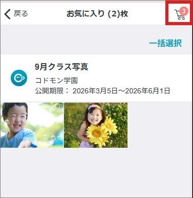 - 購入したい写真をカートに入れ終わったら [カートマーク] をタップします。