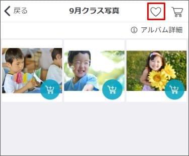 ※園(施設)によっては、 [アルバム写真] と表示されます。 - [ハートマーク] をタップします。