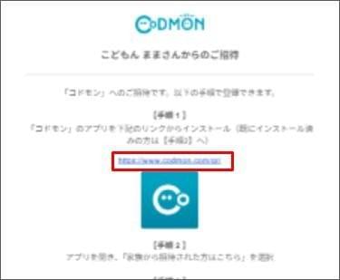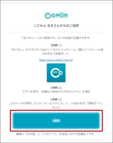 - 「コドモンへのご招待」のメールを開き、招待コードを記録します。