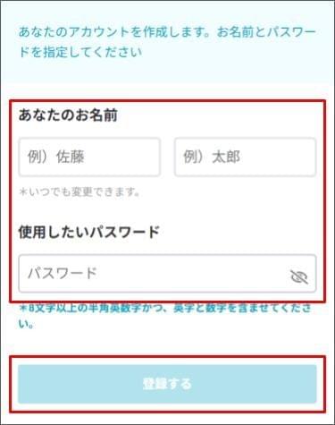 - お名前と使用したいパスワードを入力し、[登録する] をタップします。